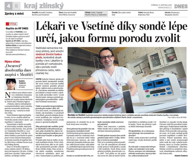 zakoupený firmou INDET SAFETY SYSTEMS a.s. pomáhá sledovat životní funkce plodu, konkrétně obsah kyslíku v krvi.