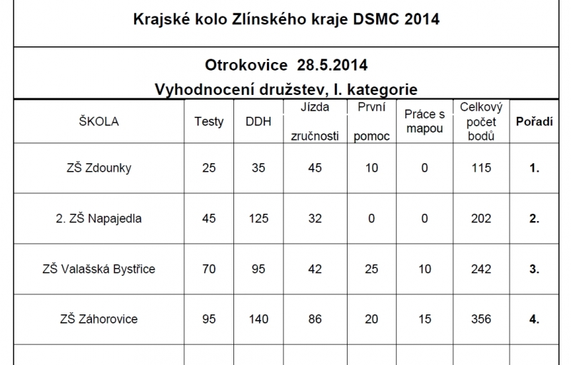Výsledky soutěže, kategorie I.