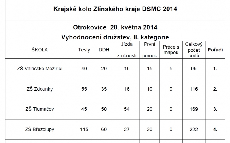 Výsledky soutěže, kategorie II.