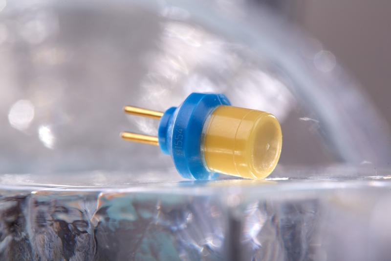 A pyrotechnic initiator made from a glass-to-metal sealed header and pyrotechnic charges pressed into a metal cup. It is used as an ignition unit in gas generators for seatbelts and in airbag inflators.